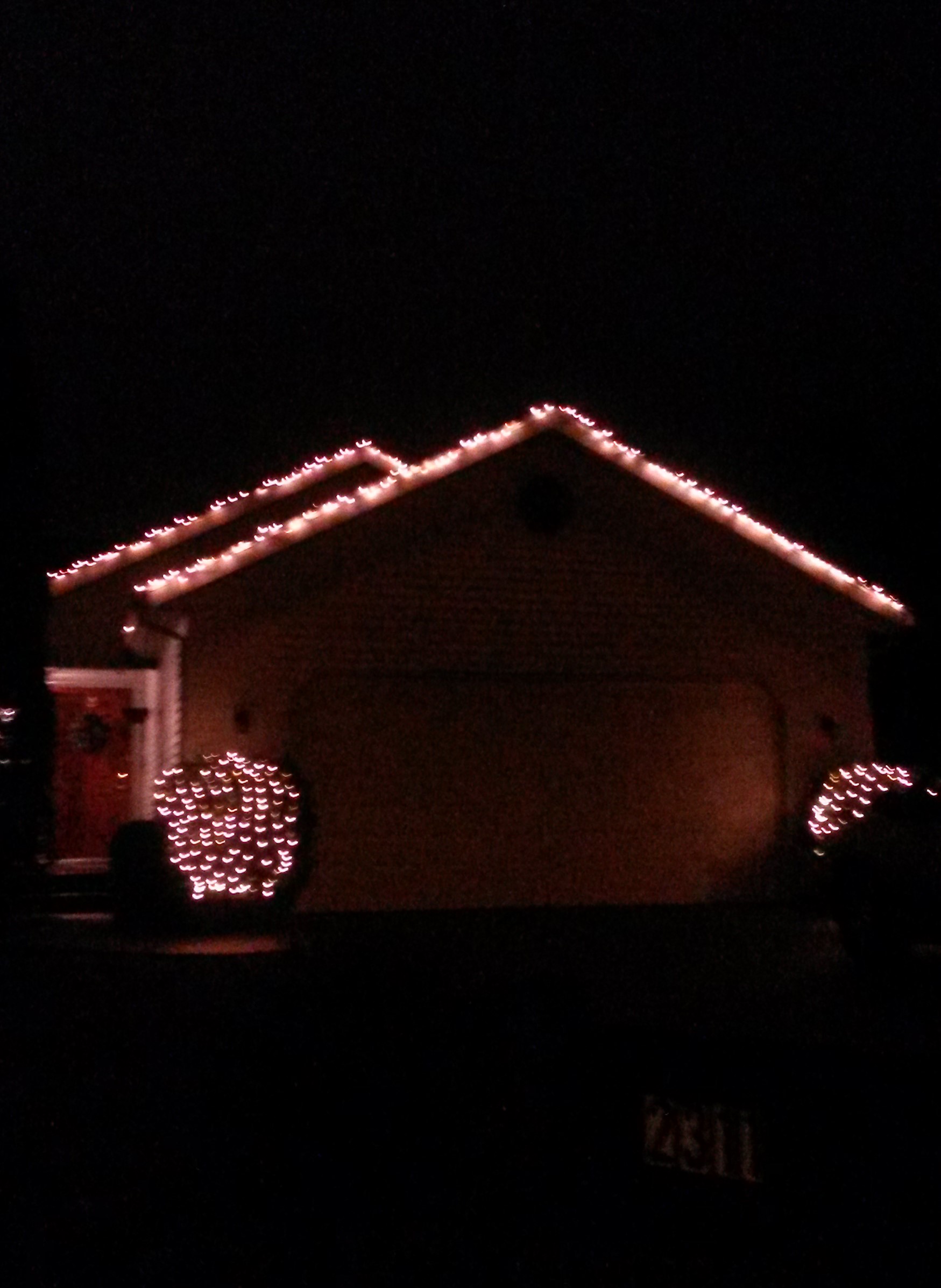 Pana anul acesta, obisnuiam sa bufnesc in ras de fiece data cand treceam pe langa o astfel de casa impanzita de ktch-uri multicolore, neparat luminate si neaparat miscatoare. Anul acesta, insa, am vazut o inscriptie luminoasa pe acoperisul unei asemenea case. Scria (cu beculete palpaitoare, de toate culorile): „Happy Birthday, baby Jesus!” [Nota: Am trecut ziua pe langa casa si am incercat sa-i fac o poza din masina. Imi cer scuze pentru calitatea imaginii. Va trebui sa va folositi imaginatia: inscriptia cu pricina ar fi pe acoperis, intre cei doi fulgi de zapada, dar ziua e stinsa. In plus, decoratiunile din poza sunt doar o particica din cele cateva zeci de exponate care inconjoara casa pe toate partile.] Asta s-ar traduce prin „La Multi Ani, pruncule Iisus!”, dar conotatia in limba engleza e mult mai familiara. Mai aproape ar fi, probabil, La Multi Ani, bebe Iisus!”